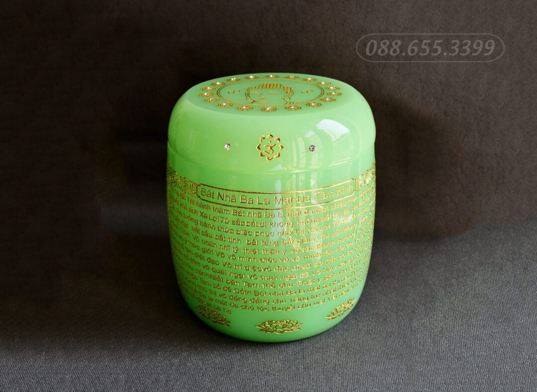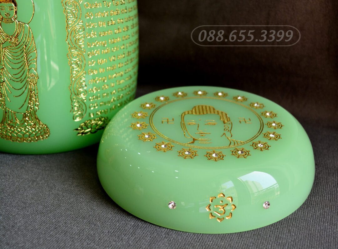 Hũ Đựng Tro Cốt Lưu Ly Xanh Khắc Bát Nhã Tâm Kinh Phật LT-A086