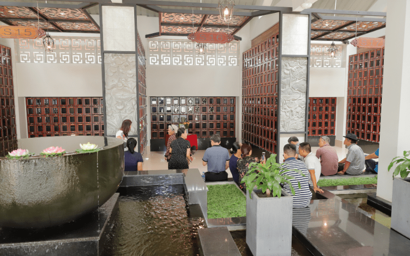Không gian trang nghiêm không chỉ giúp bảo quản hũ tro cốt tốt hơn mà còn mang lại cảm giác an yên cho gia đình mỗi lần thăm viếng.