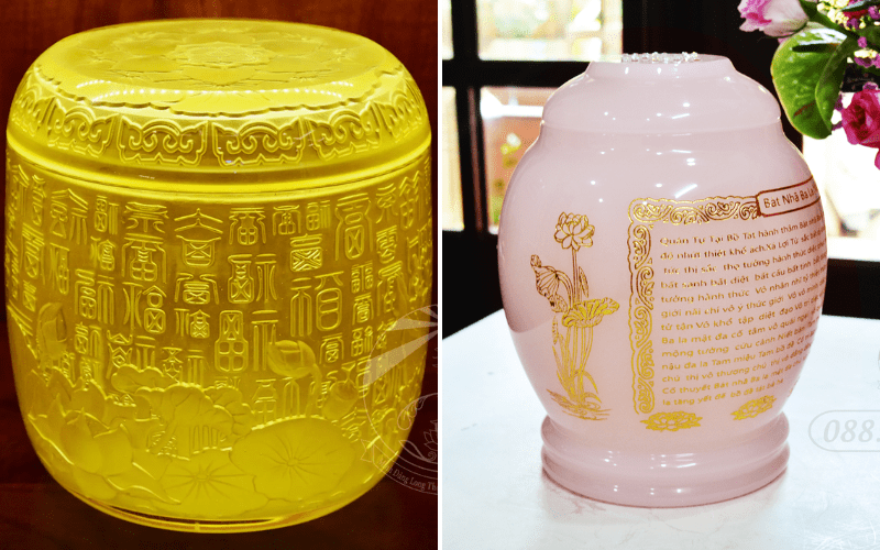 Hũ tro cốt khắc chữ Vạn hoặc kinh Phật cầu siêu độ